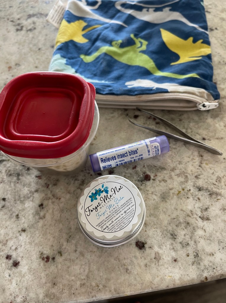 I’ve resorted to making myself a grab-and-go tick kit. It goes to baseball practice, picnics, and every park play date. Here’s what’s in it…