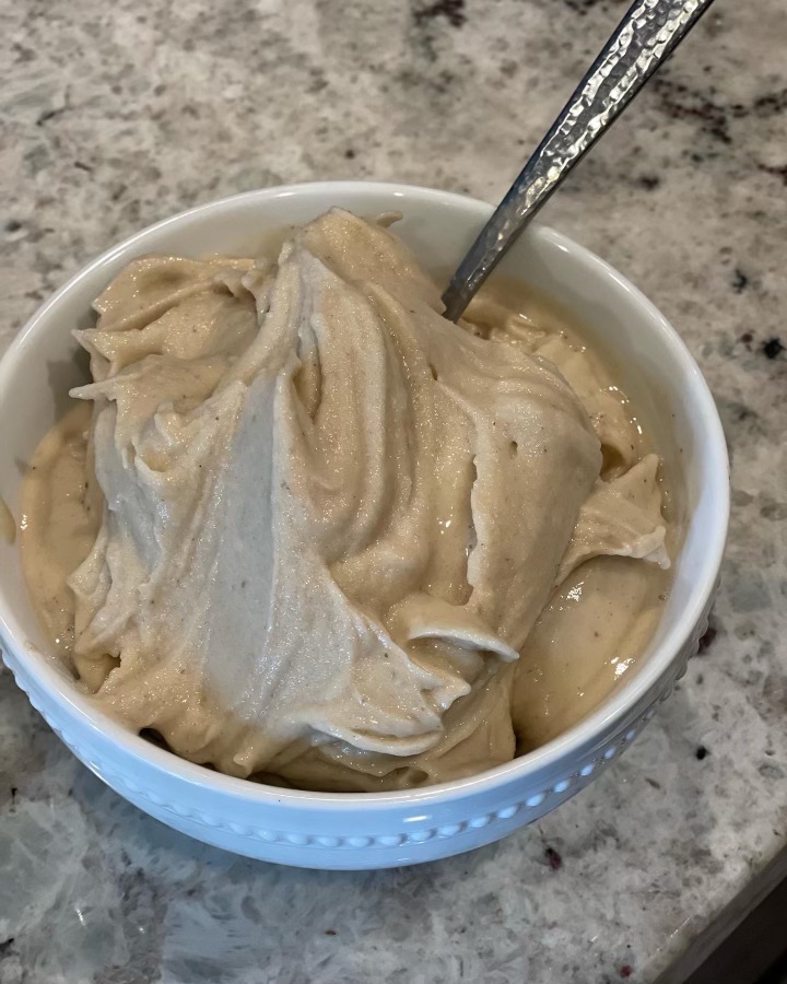 2. Blend once frozen with a few tablespoons of healthy milk of choice (I love Ripple or full fat coconut).