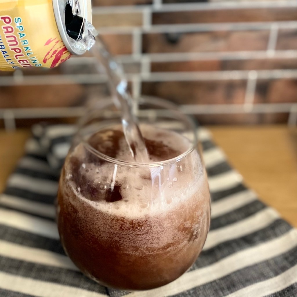To make the spritzer, all you need is 1 tablespoon of Elderberry Syrup, ice, and sparkling water. Simply place the Elderberry Syrup at the bottom of your glass, and top with ice. From there, fill your glass with sparkling water. It is the perfect year-round immune-boosting and yummy treat! If you want to take your spritzer to the next level, add a garnish of lemon, fresh mint, or fresh rosemary.